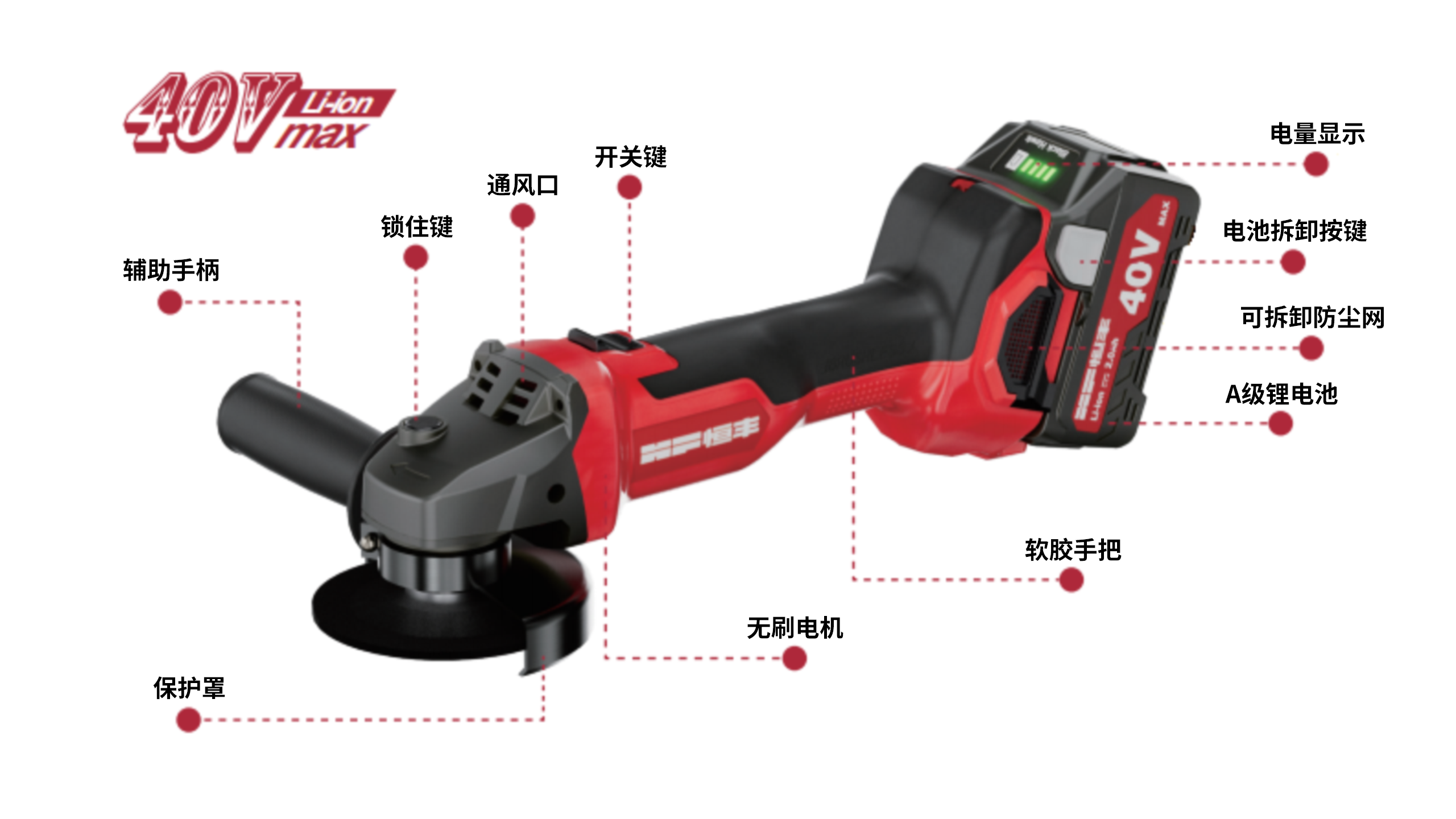 锂电无刷:无火花,不烧机,扭力强,转速高。无需更换碳刷,无需加油,维护方便。使用寿命20000小时左右。