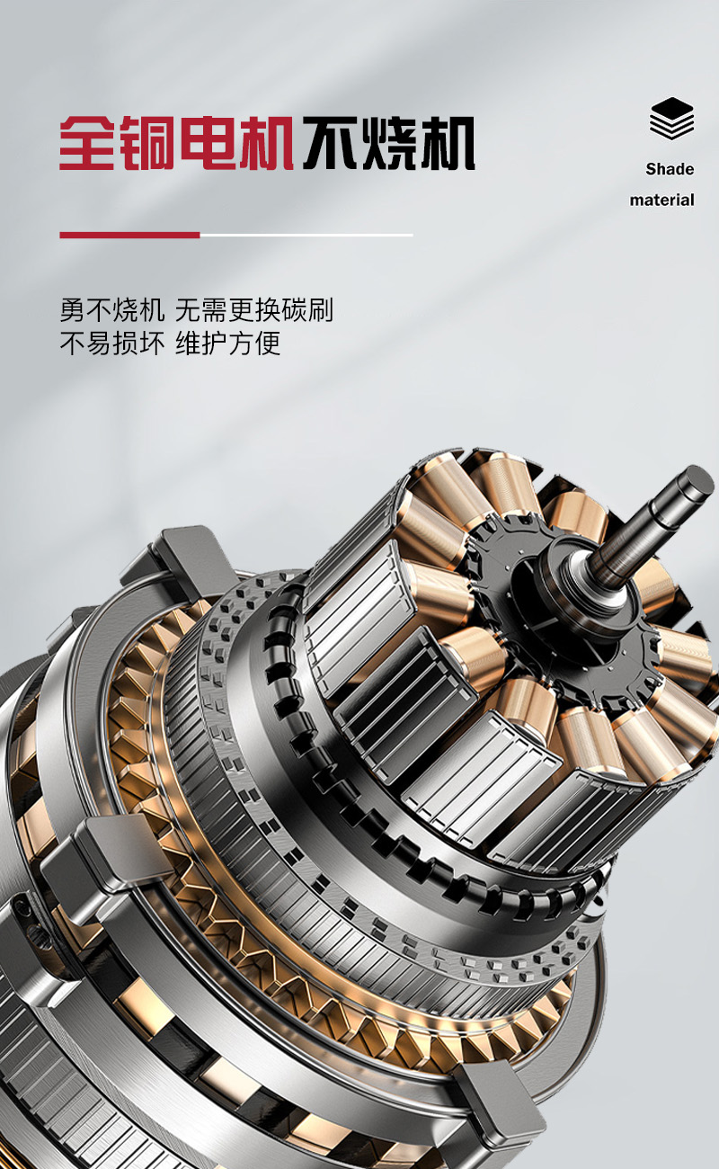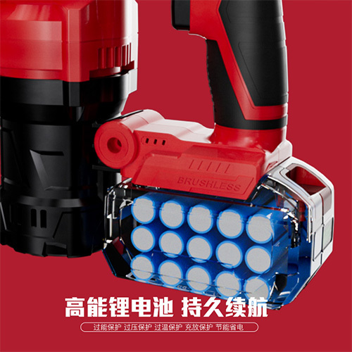 锂电无刷:无火花,不烧机,扭力强,转速高。无需更换碳刷,无需加油,维护方便。使用寿命20000小时左右。